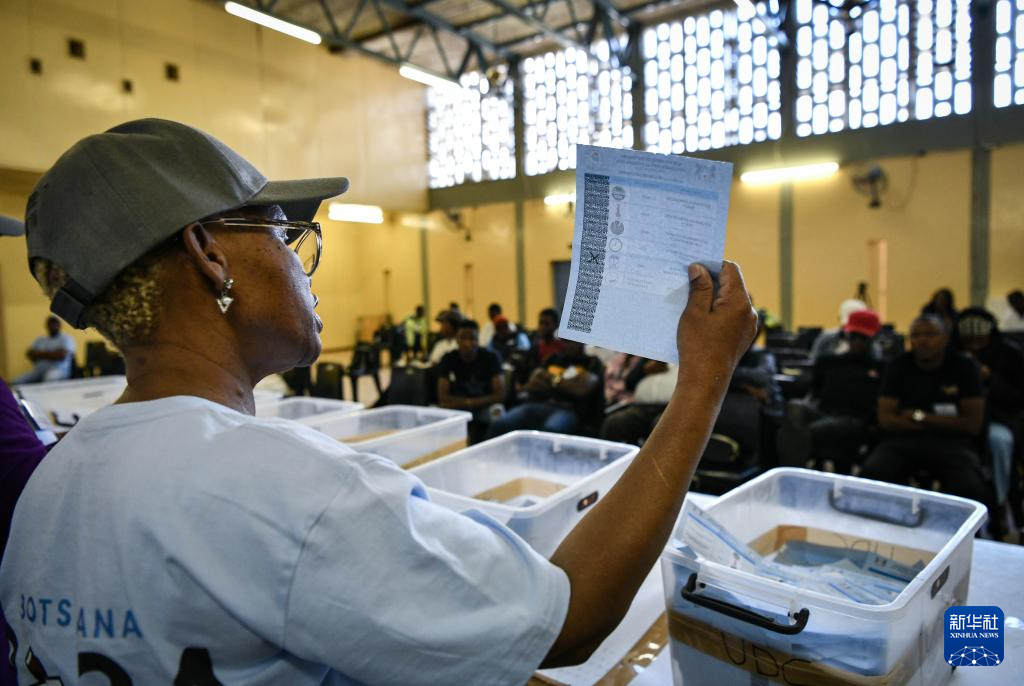 10月31日,工作人员在博茨瓦纳首都哈博罗内的一处投票站内统计选票。 博茨瓦纳30日举行新一届国民议会选举。博茨瓦纳全国100多万名登记选民将投票选出61名国民议会议员和609名地方议会议员。 新华社记者 韩旭 摄