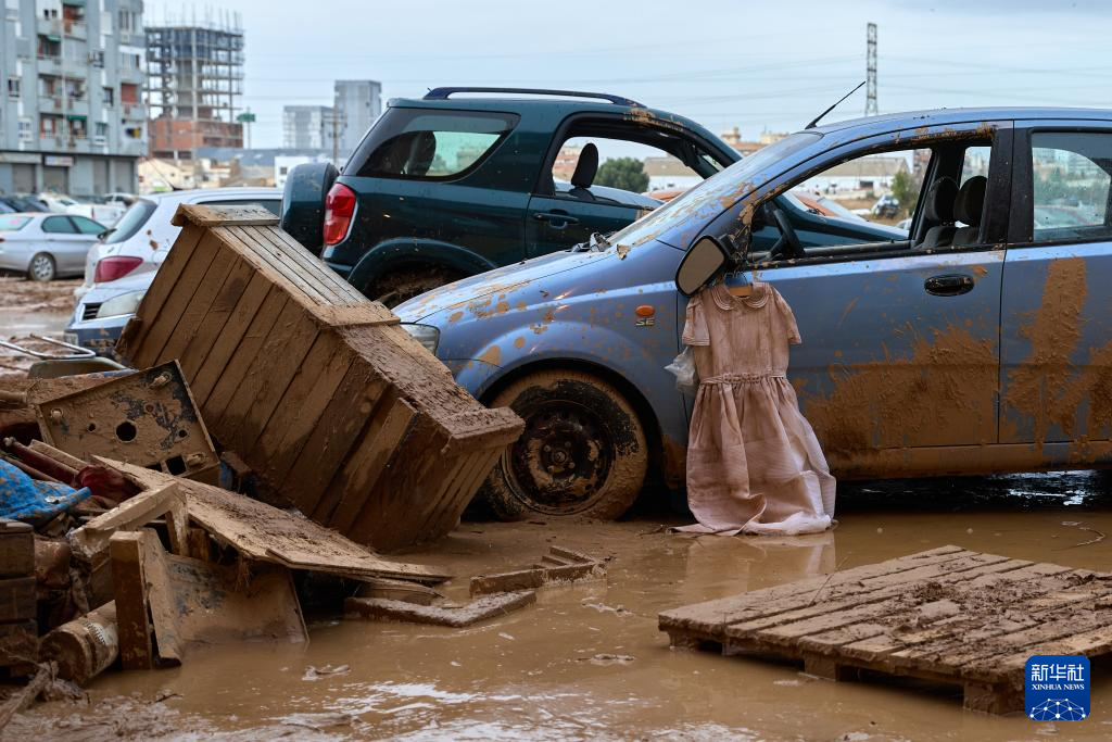 这是11月3日在西班牙巴伦西亚塞达维地区拍摄的洪水退去后污迹斑斑的汽车。 西班牙政府3日数据显示,该国东南部洪灾已致至少214人死亡。西班牙首相佩德罗·桑切斯2日宣布再向灾区派出5000名军人、5000名警察和国民警卫队人员,说这是“和平时期西班牙武装部队规模最大的一次行动”。此外,数千名志愿者投入救援,帮助灾区清理废墟、分发物资。 新华社记者 孟鼎博 摄