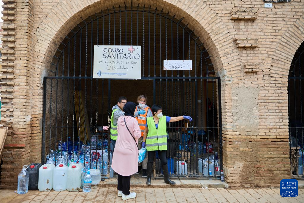 11月3日,志愿者在西班牙巴伦西亚拉托雷地区一处教堂分发物资。 西班牙政府3日数据显示,该国东南部洪灾已致至少214人死亡。西班牙首相佩德罗·桑切斯2日宣布再向灾区派出5000名军人、5000名警察和国民警卫队人员,说这是“和平时期西班牙武装部队规模最大的一次行动”。此外,数千名志愿者投入救援,帮助灾区清理废墟、分发物资。 新华社记者 孟鼎博 摄