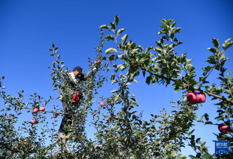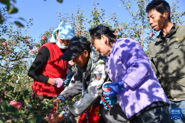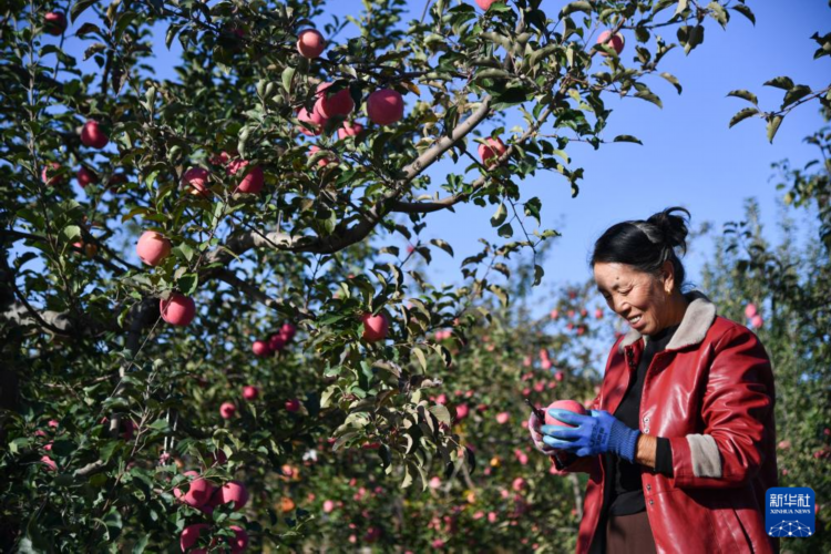 果树之下,果农赵永东与妻儿手握剪刀,将红彤彤的苹果一颗颗摘下,小心地放入筐中。这个秋季,赵永东家的果园将收获5万余颗苹果,共计约3万斤。