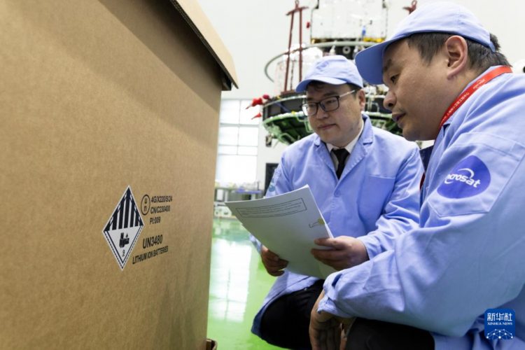 11月4日,在位于上海的中国科学院微小卫星创新研究院总装厂房,海关工作人员在检查包装箱。