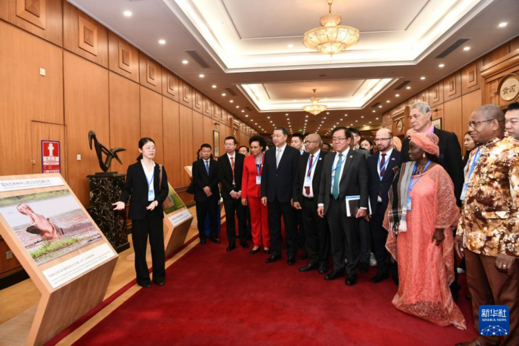 11月6日,各国嘉宾在深圳参观红树林湿地图片展。新华社记者 梁旭 摄