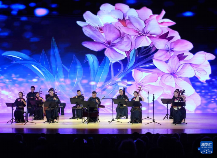 11月6日,演职人员在表演经典古琴曲目《流水》。