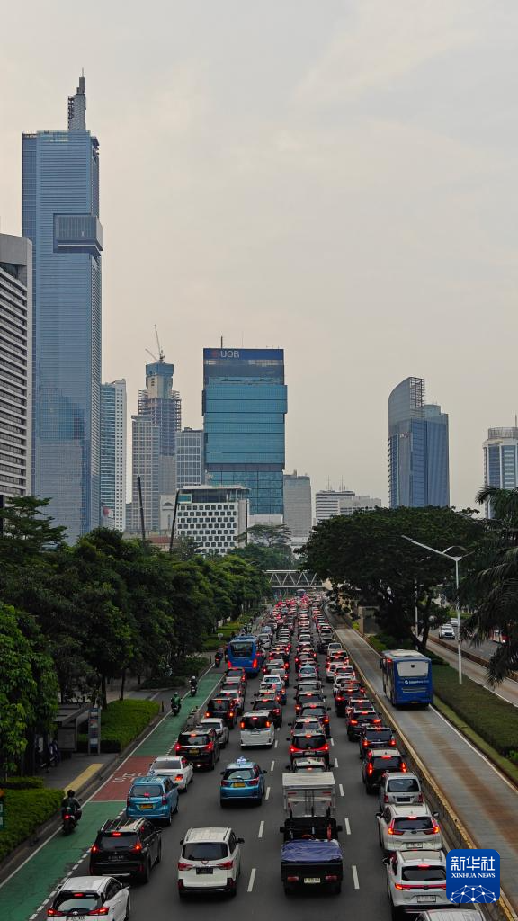 这是7月13日在印度尼西亚雅加达苏迪曼大街拍摄的晚高峰车流(手机照片)。 雅加达位于印度尼西亚爪哇岛西北海岸,是印度尼西亚的最大城市,也是全国的政治、经济、文化中心。 新华社记者 徐钦 摄