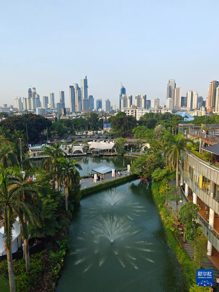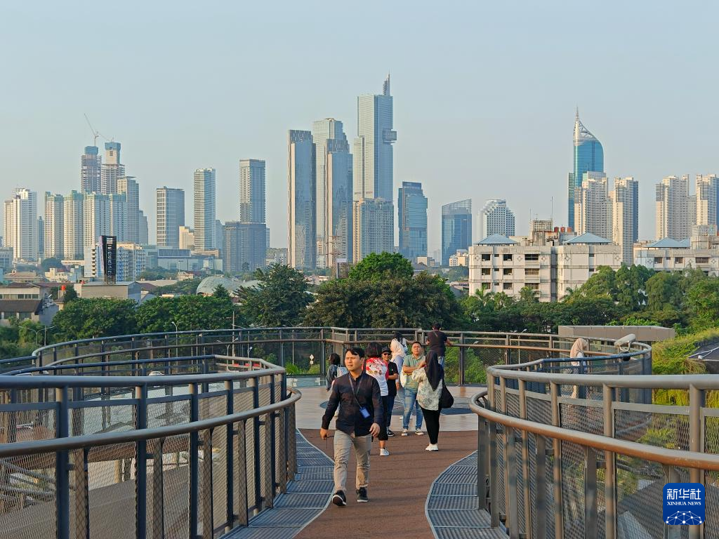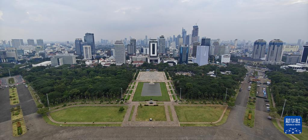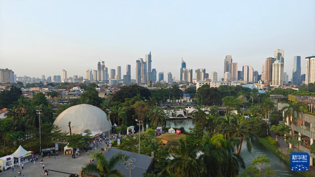 这是7月12日在印度尼西亚雅加达史纳延公园拍摄的城市风光(手机照片)。 雅加达位于印度尼西亚爪哇岛西北海岸,是印度尼西亚的最大城市,也是全国的政治、经济、文化中心。 新华社记者 徐钦 摄