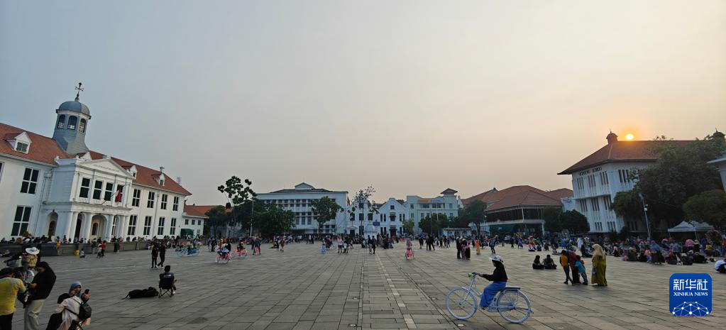 7月11日,人们在印度尼西亚雅加达法塔西拉广场游玩(手机照片)。 雅加达位于印度尼西亚爪哇岛西北海岸,是印度尼西亚的最大城市,也是全国的政治、经济、文化中心。 新华社记者 徐钦 摄