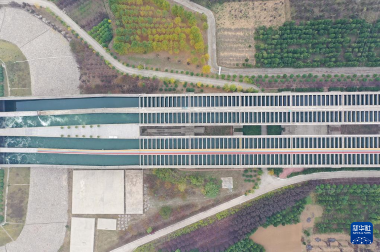 这是10月29日在河南省南阳市淅川县拍摄的南水北调中线工程陶岔渠首(无人机照片)。