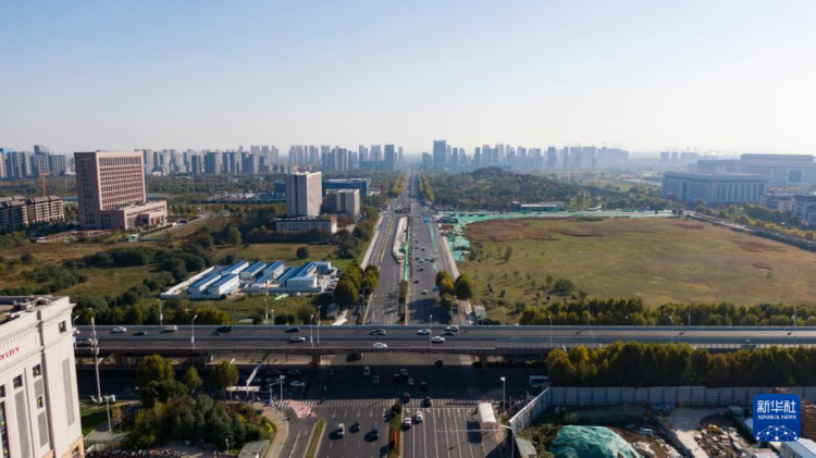 这是11月7日拍摄的包河大道紫云路跨线桥(无人机照片)。该点位已部署46个监测设备,对桥梁主梁、墩柱、伸缩缝等进行重点监测。