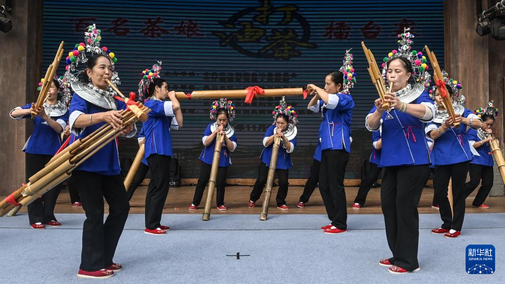11月9日,在广西三江侗族自治县月也侗寨,侗族妇女在演奏。