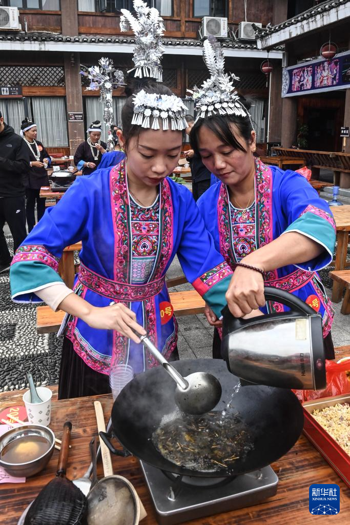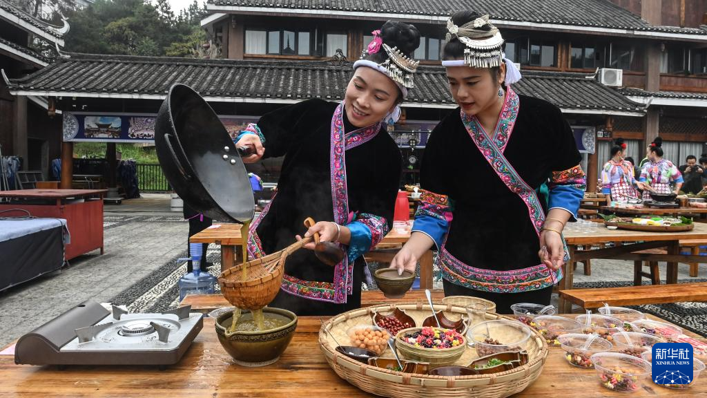当日,广西三江侗族自治县举行多耶节活动,侗族群众以打油茶、油茶宴及民俗表演等多彩节目来欢迎从远方来的客人,共庆侗乡传统佳节。