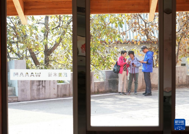 游客在北京市怀柔区慕田峪长城脚下的渤海镇北沟村游玩(10月29日摄)。