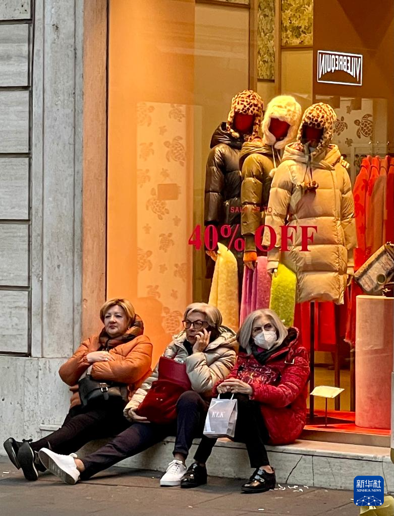 2023年1月7日,在意大利罗马,行人坐在街头(手机照片)。