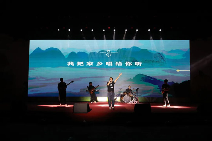 音乐晚会以一首唱腔优美,婉转流畅的闽剧《壮阔新征程 谱写新篇章》开场,展现了古田在新时代的新气象、新面貌。在现场,冲动乐队、梦转乐队演唱的一首首经典流行歌曲,引发现场观众大合唱。舞台下,观众们纷纷打开手机的手电筒,挥舞着双手,尽情欢呼、舞动,体验这场丰盛的音乐晚会。最后,晚会在一首合唱歌曲《我把古田唱给你听》中圆满落幕。