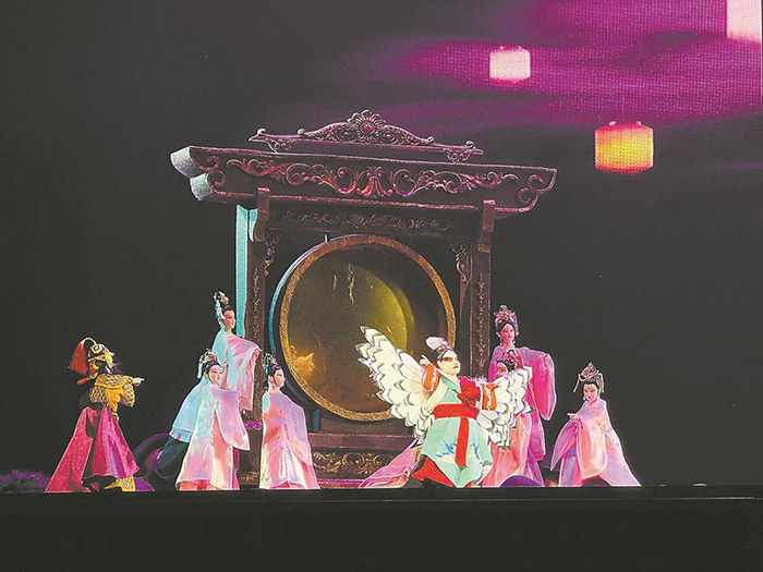 《一鹤“飞”》是晋江市掌中木偶艺术保护传承中心出品的大型新编传奇木偶剧。舞台上,一个个人偶轻盈跃出,腾空旋转,跳圈吐火……在观众的欢呼和掌声中,一出用喜剧口吻讲述的悲剧逐渐展开——