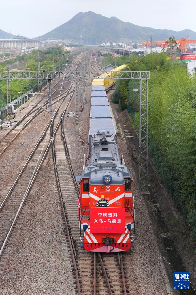 当日,一趟满载110个标准箱日用百货、汽车配件、机械设备等出口货物的中欧班列从义乌西站驶出,驶往逾1.3万公里外的西班牙马德里。义乌中欧班列迎来开行十周年节点。十年来,义乌中欧班列累计开行逾6700列,发运逾67万标准箱,为“世界小商品之都”义乌“买全球、卖全球”提供重要运力支撑。