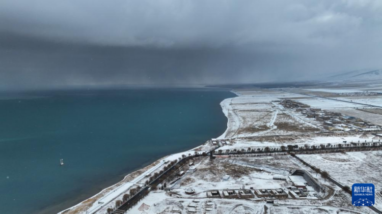 这是11月18日拍摄的青海湖一角(无人机照片)。