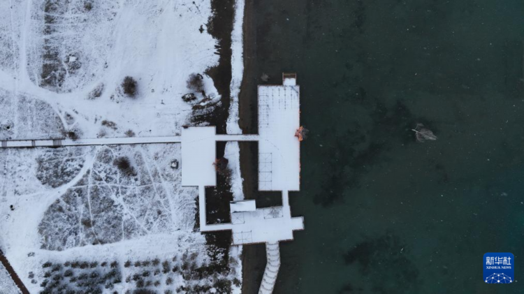 这是11月18日拍摄的青海湖二郎剑景区码头(无人机照片)。