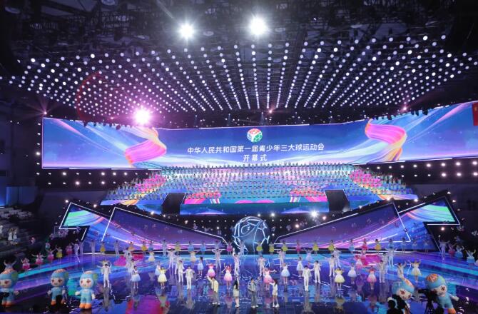 主题短片《上场》通过三大球的“传球”和“接球”动作,跨越山川湖海,连接时空,也寓意着三大球的接力棒正交到年轻一代青少年运动员手中。青春、热烈、欢庆的开场秀《三大球之名》则融合阵仗球舞、蹦床扣篮、花样三球、跑酷滑板等运动元素,将全场氛围点燃。