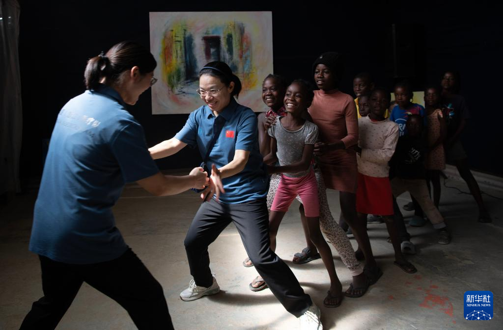 11月20日,在纳米比亚首都温得和克附近的弗兰斯艺术培训中心,中国医生与孩子们做游戏。 11月20日是世界儿童日,第十六批中国援纳医疗队的四名队员一早就来到了距离首都温得和克20多公里的弗兰斯艺术培训中心,为在此就读的45名生活在贫民区的孩子进行身体和口腔健康检查,并给孩子们准备了学习用品、绘画工具和食品。 新华社记者 陈诚 摄