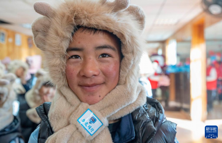 11月21日,北京光爱学校的学生戴上志愿者捐赠的保暖帽。