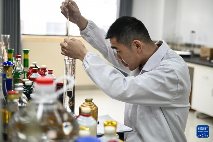 11月21日,在国家白酒质检中心洋河实验室,工作人员在检测酒精度。