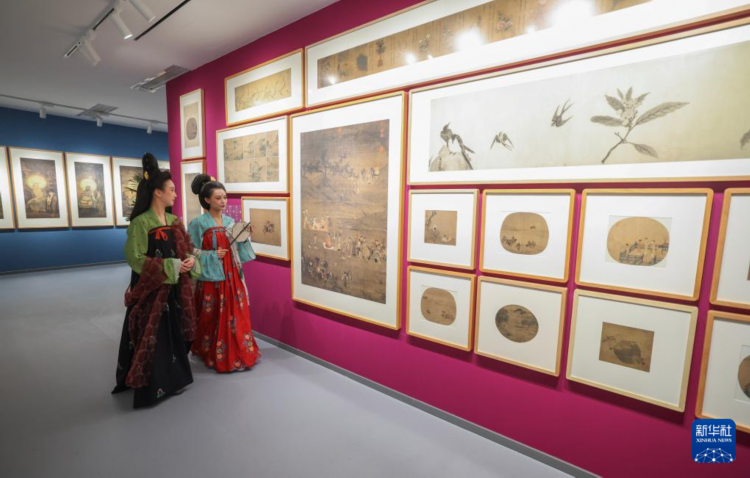 11月25日,身着传统服饰的观众在“中国历代绘画大系”典藏馆内参观。