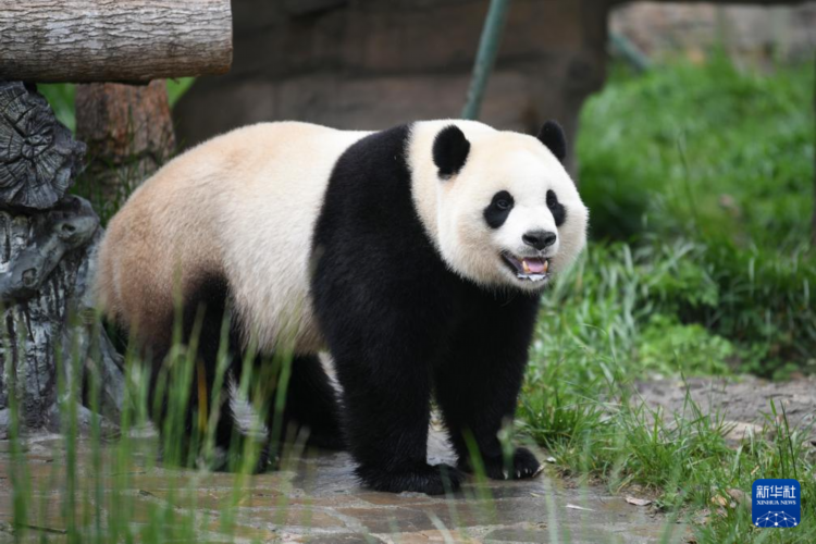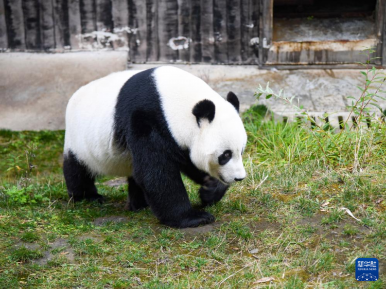 4月21日,在成都大熊猫繁育研究基地,大熊猫“圆梦”在外场玩耍。大熊猫“圆梦”,雄性,2017年8月4日出生于法国博瓦勒动物园。