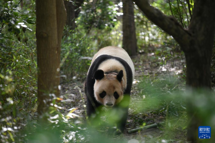 4月16日在中国大熊猫保护研究中心卧龙神树坪基地拍摄的大熊猫“小奇迹”。大熊猫“小奇迹”,雄性,2020年8月21日出生于美国华盛顿国家动物园。