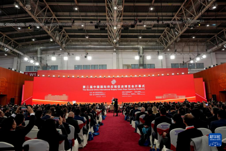当日,由中国贸促会主办的第二届中国国际供应链促进博览会在北京开幕,主题是“链接世界,共创未来”。