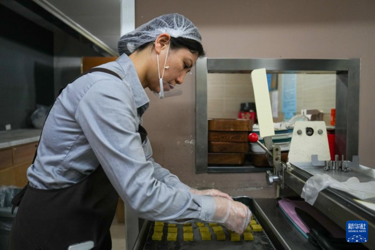 在位于北京前门大街的吴裕泰茶庄,工作人员在制作茶饼干(11月15日摄)。新华社记者 鞠焕宗 摄