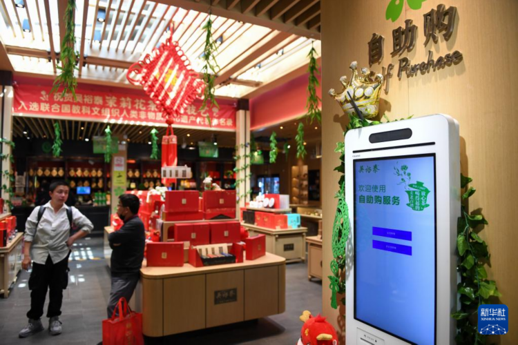 在吴裕泰北新桥总店内设置的自助购(4月16日摄)。新华社记者 鞠焕宗 摄