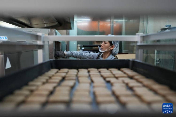 在位于北京前门大街的吴裕泰茶庄,工作人员在制作茶饼干(11月15日摄)。