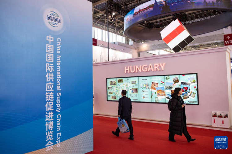 11月28日拍摄的第二届中国国际供应链促进博览会匈牙利国家馆展台一角。