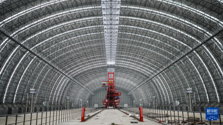 主体结构建设完成的六盘水市水城区煤炭储配基地2号储煤场(11月22日摄)。