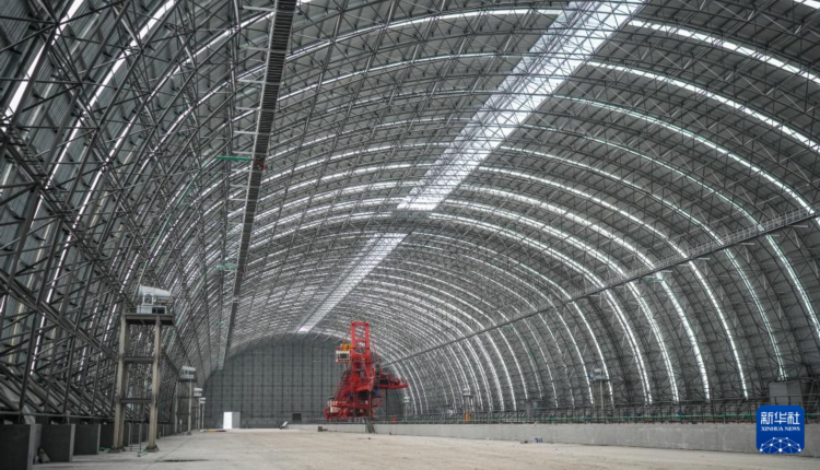 主体结构建设完成的六盘水市水城区煤炭储配基地1号储煤场(11月22日摄)。