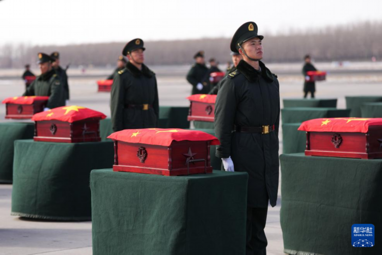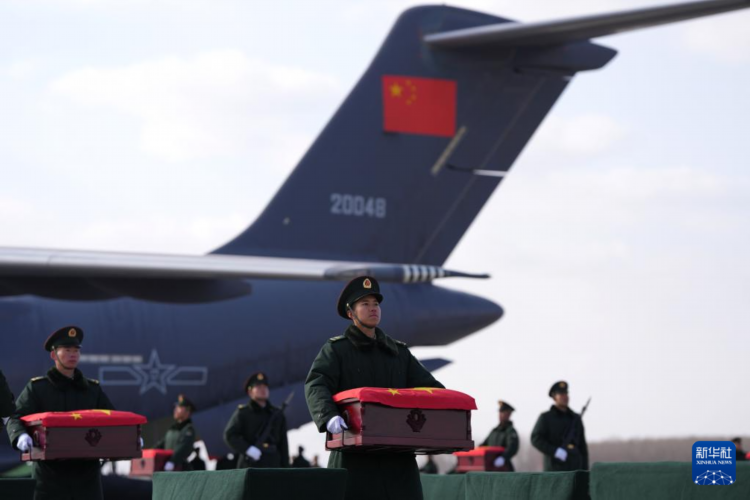 每一具棺椁上,都覆盖上了中华人民共和国国旗。随后,运-20运输机载着英烈踏上回国之路。