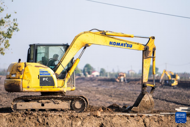 12月1日,在华阁镇光复渔村,工人驾驶机械进行高标准农田施工作业。
