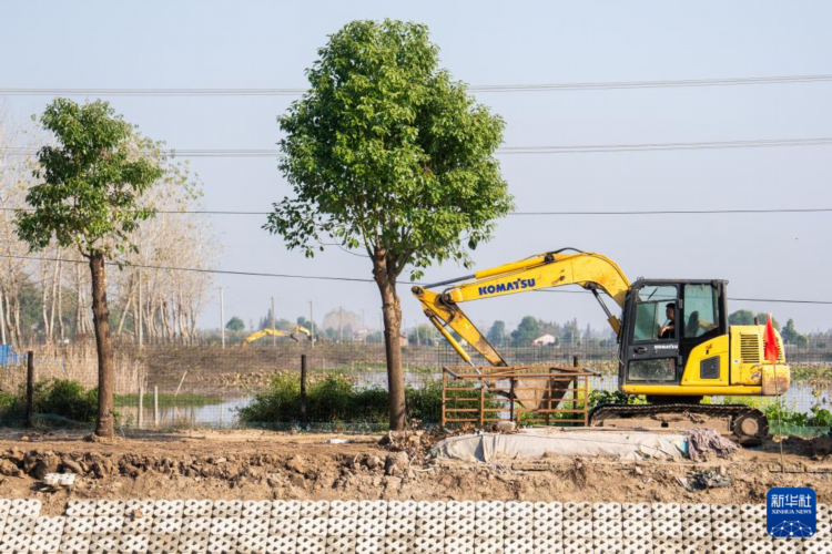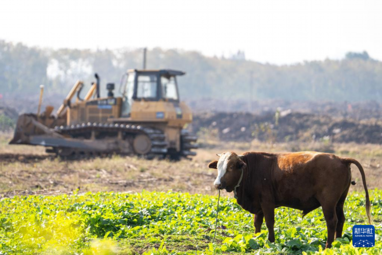 12月1日,在华阁镇光复渔村,工人驾驶机械进行高标准农田施工作业。
