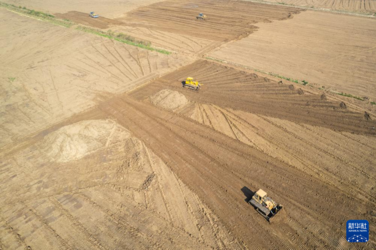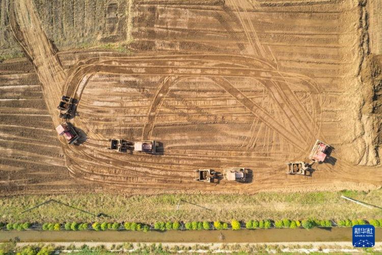 这是12月1日在华阁镇华西村拍摄的高标准农田建设施工现场(无人机照片)。
