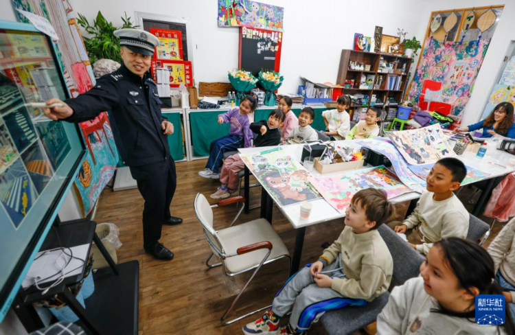 在第13个“全国交通安全日”到来之际,乌鲁木齐市公安局交警支队民警和爱好漫画的小朋友们一起创作交通安全主题漫画,学习交通安全知识。