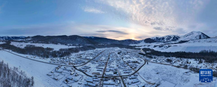 这是11月30日在新疆阿勒泰地区布尔津县拍摄的禾木村冬景(无人机全景照片)。