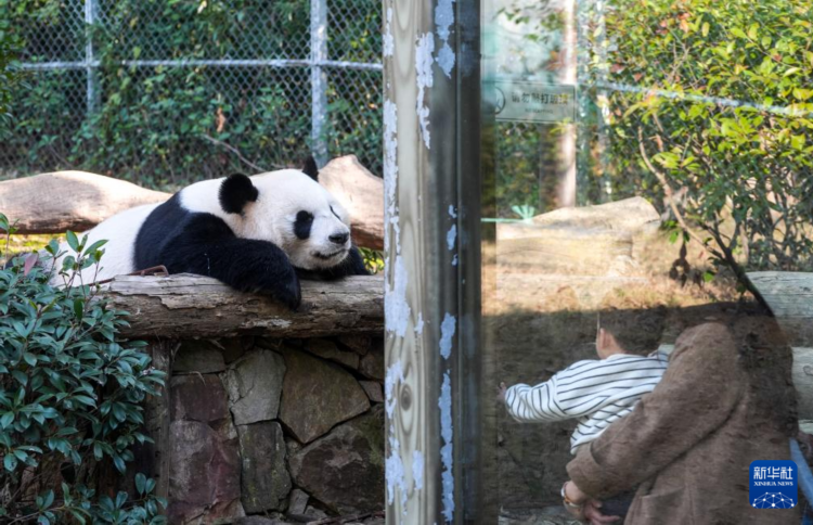 12月1日,游客在观看大熊猫“福虎”睡觉。