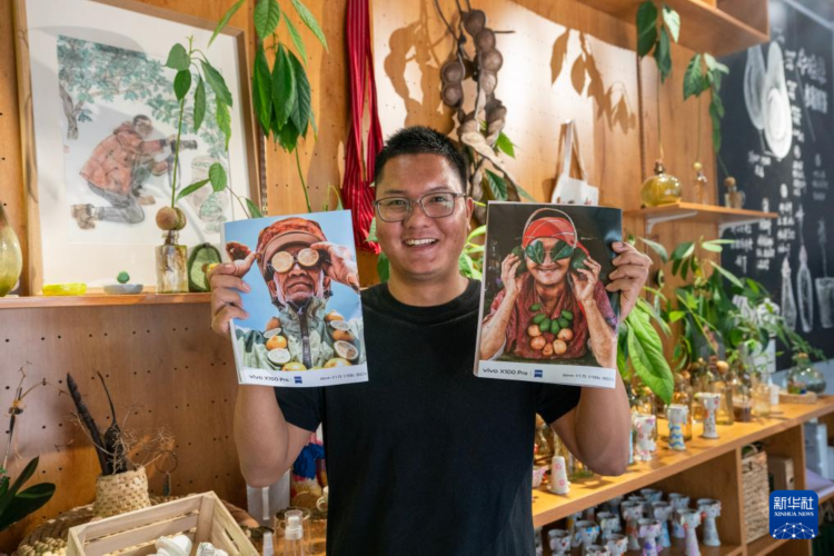 孟连县“新农人”、“牛友果星球”工作室主人李伟展示自己拍摄的创意照片(10月28日摄)。