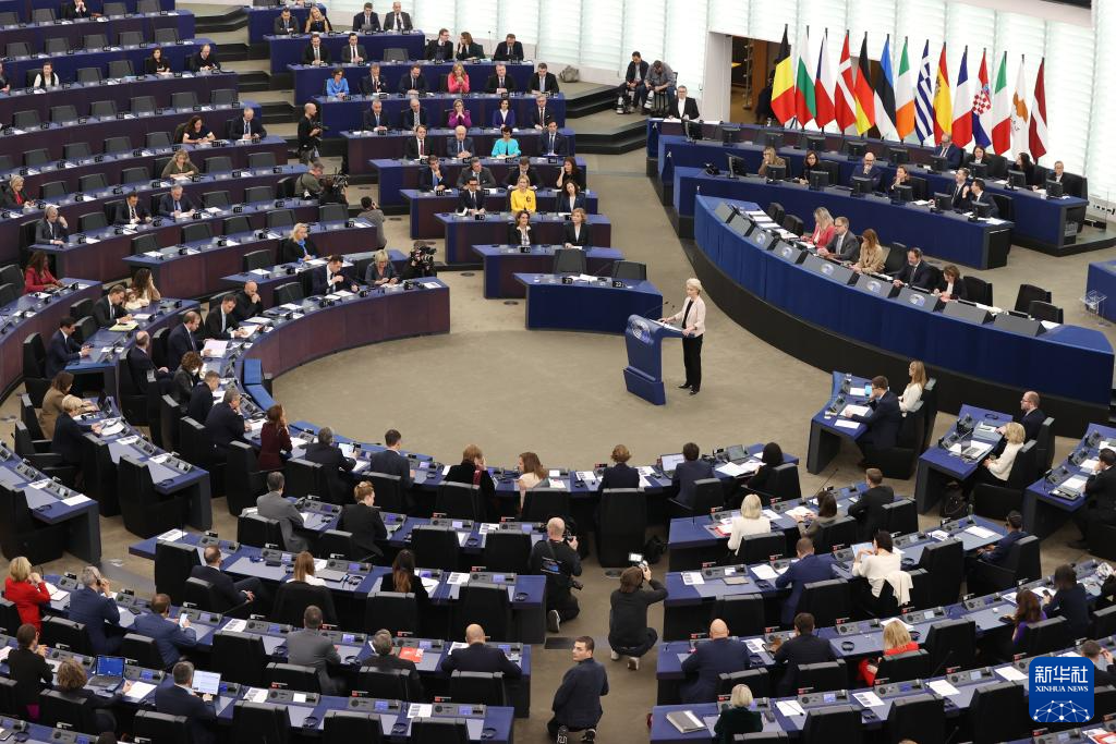 欧洲议会通过新一届欧委会名单 11月27日,在法国斯特拉斯堡,冯德莱恩在欧洲议会会议上讲话。 欧洲议会27日在法国斯特拉斯堡表决通过了以冯德莱恩为主席的新一届欧盟委员会(欧委会)委员名单。 新华社记者 赵丁喆 摄