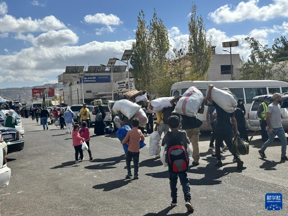 这是2024年10月1日在叙利亚与黎巴嫩边境的佳迪达·亚布斯口岸拍摄的来自黎巴嫩的流离失所者(手机照片)。新华社记者 冀泽 摄