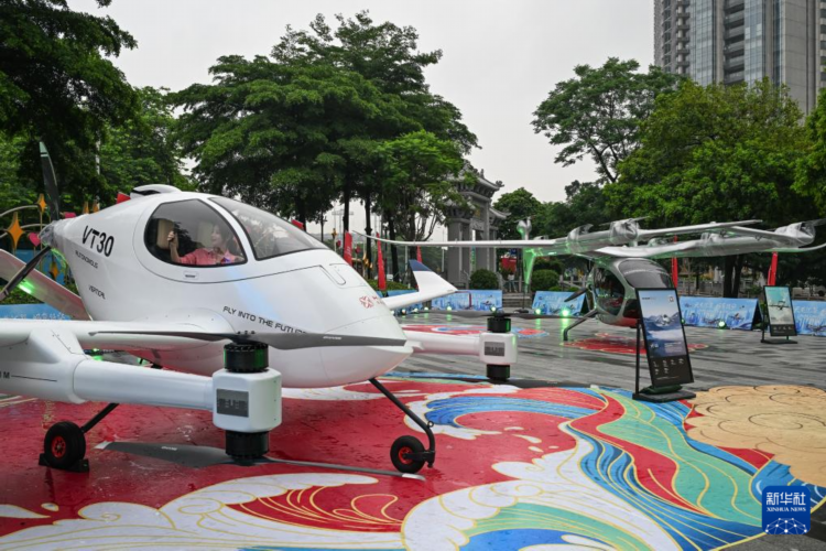 6月3日,观众在广州低空航展上体验亿航智能VT-30无人驾驶载人航空器座舱。