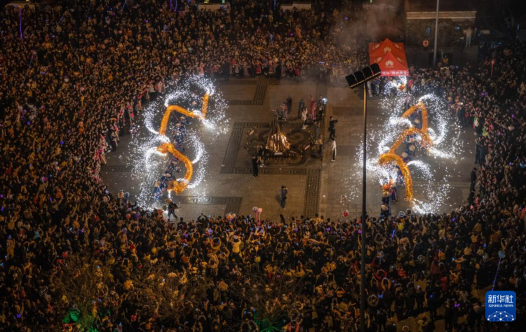 在四川省北川羌族自治县禹王广场,当地群众舞龙欢庆羌历新年(2020年11月14日摄)。
