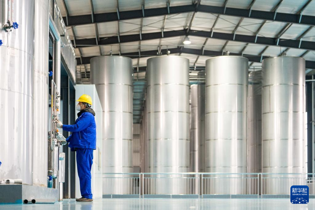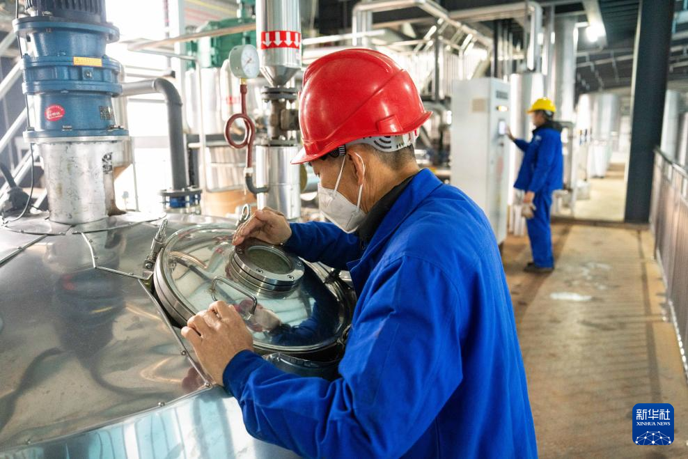 12月7日,工人在位于祁阳市观音滩镇的湖南金波茶油有限公司查看茶油生产情况。