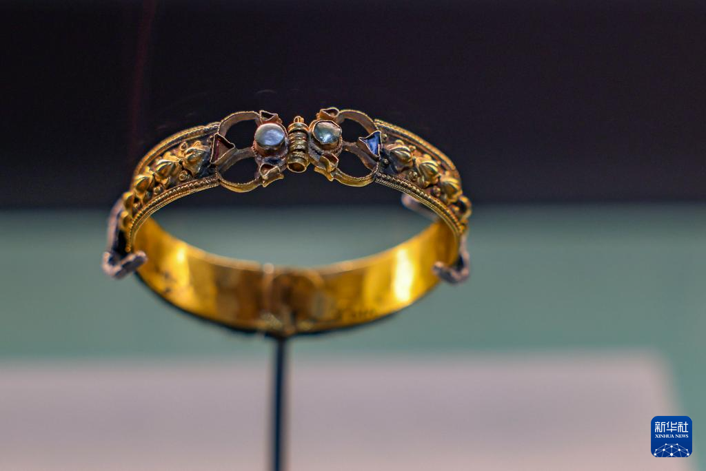 这是12月6日在“古波斯的荣耀——伊朗文物精华展”拍摄的金手镯。 新华社记者 陈朔 摄