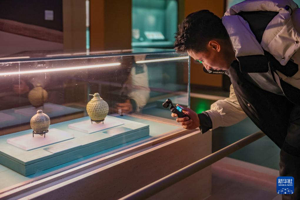12月6日,参观者在“古波斯的荣耀——伊朗文物精华展”拍摄弗高瓶。 新华社记者 陈朔 摄